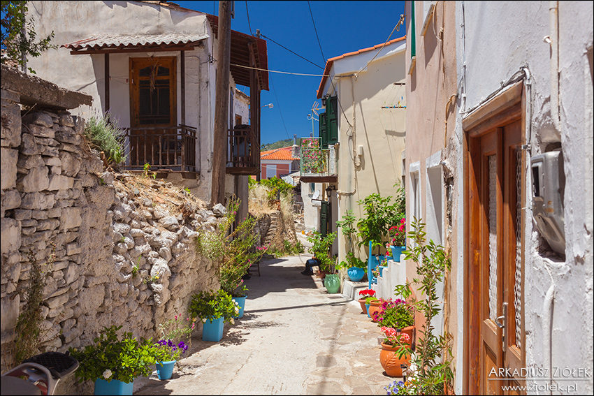 Miasteczko Pirgos na greckiej wyspie Samos CZERWIEC 2015r.